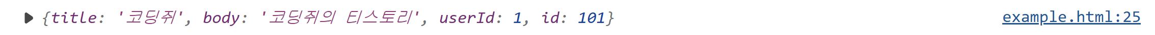 서버의 리소스를 새로 생성하거나 업데이트할 때 사용한다. fetch는 POST요청 시에 method, headers, body를 직접 설정해야 한다.