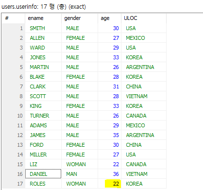 UPDATE userinfo SET age=22 WHERE ename='ROLES';