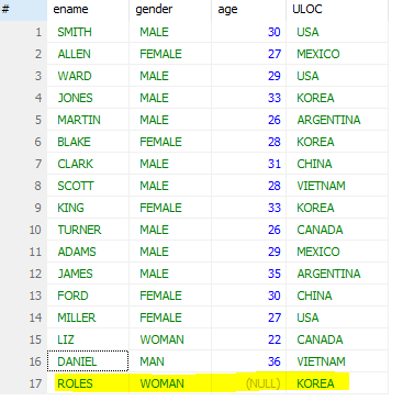 ('DANIEL', 'MAN', 36, 'VIETNAM');