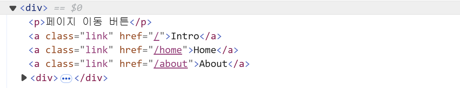 아래와 같이 Link 컴포넌트 자체는 <a>태그로 이루어져 있어, <a>태그가 자동적으로 생성되는 모습을 볼 수 있다. 하지만 페이지 전환을 방지하는 기능이 내장되어 있어 브라우저가 새로고침되지 않는다.