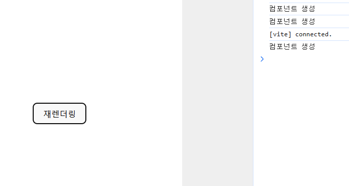 버튼을 클릭해서 setNum을 통해서 재렌더링을 시행할 때 컴포넌트가 DOM이 제거되었다가 다시 생성이 되는 모습을 볼 수 있다.