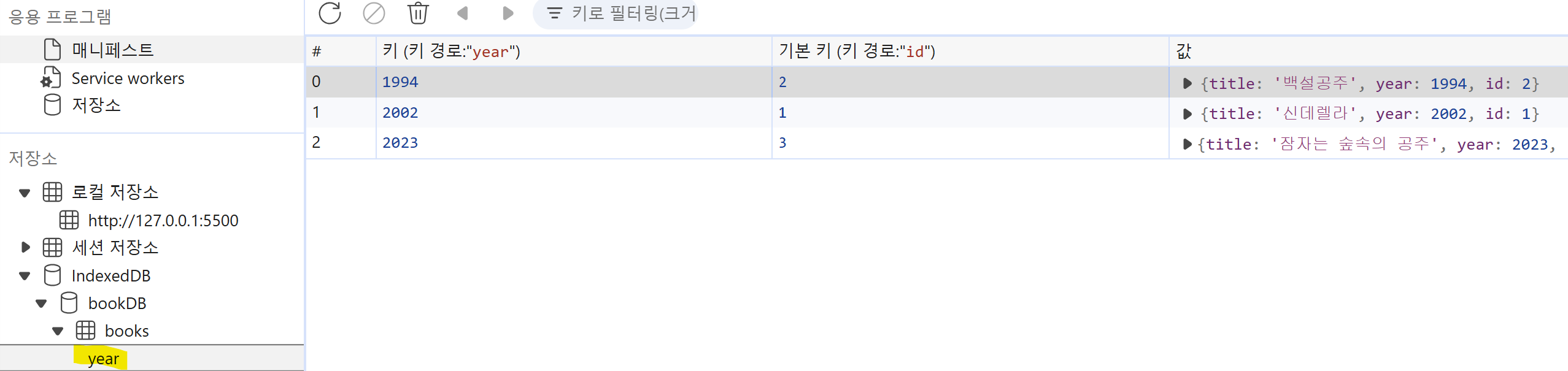 const index = store.index("year"); // store의 year 인덱스를 가져옴