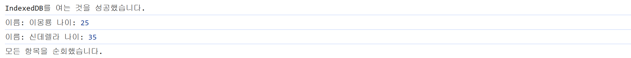 console.log("이름:", cursor.value.name, "나이:", cursor.value.age);