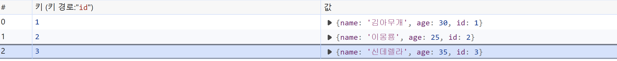| primaryKey | 조회된 자료의 keypath 속성값을 나타냄 |